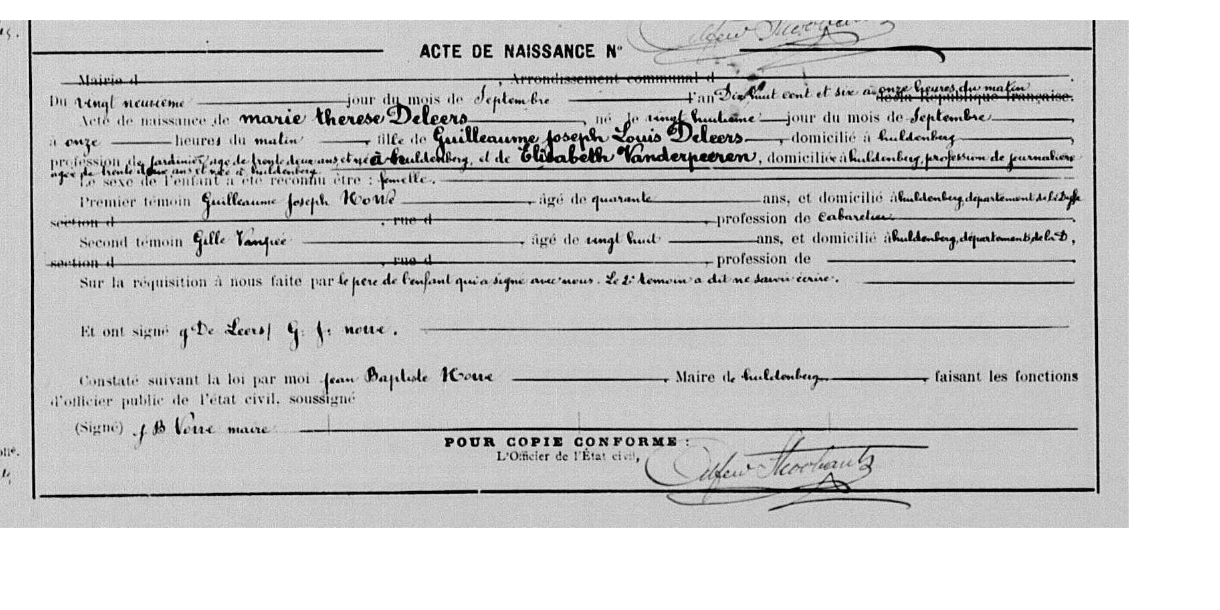 (Marie) Therèse / (Maria) Theresia Deleers / De Leers dienstmeid in Brussel * 29.09.1806 Huldenberg + 23.03.1854 Overijse |