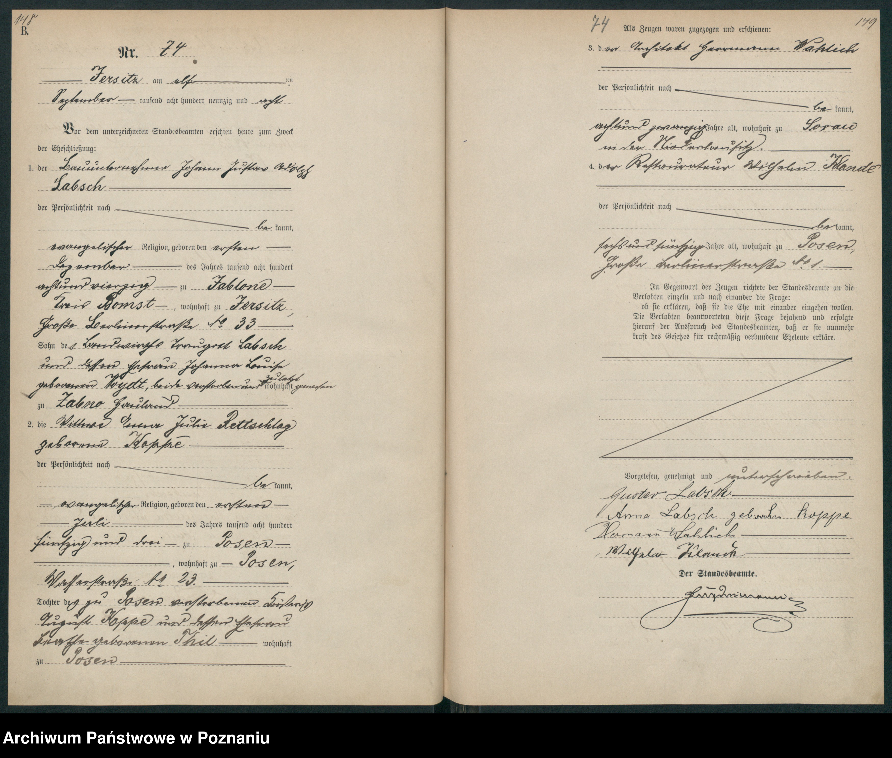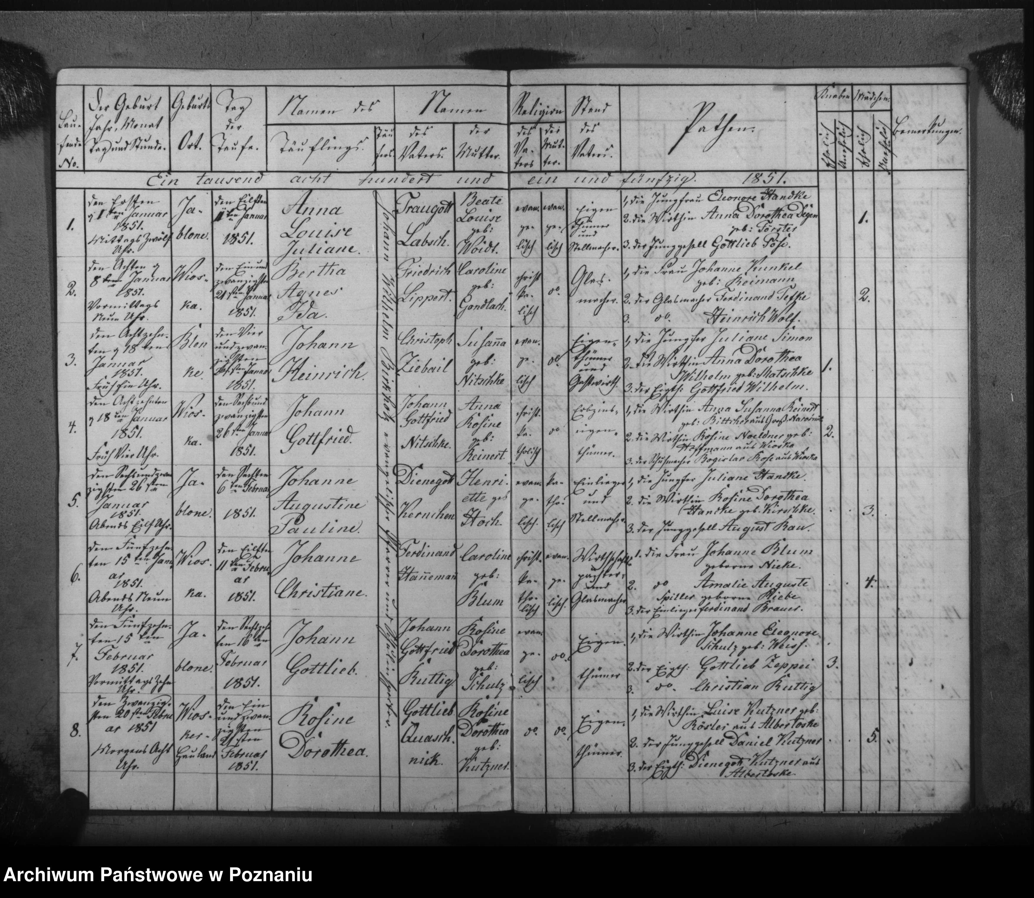 Kinder mit: Johann Traugott Labsch (* 1812 Konkolewo + nach 1867), Eigentümer und Stellmacher zu Jablone [WEITER IM OFB GRÄTZ] (oo 17.11.1842 Grätz):