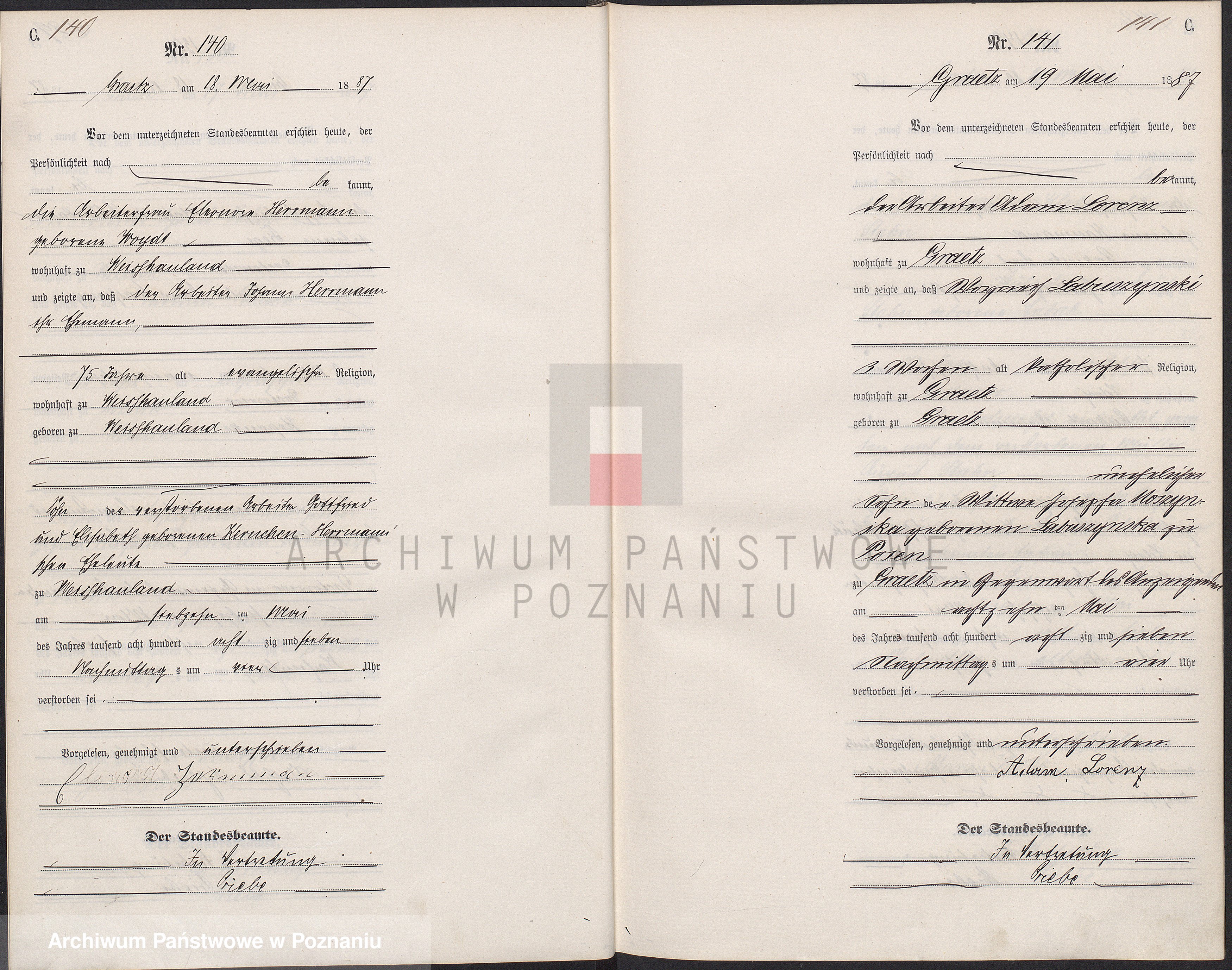 1. Kinder mit: Carl Ernst Grammentz (* 1826 Uszeszke + 1856 Troszczyn) Eigentümer zu Mokre Dakowo; Einwohner zu Troszyzyn (oo 22.07.1851 Grätz (Sroszcynow?):