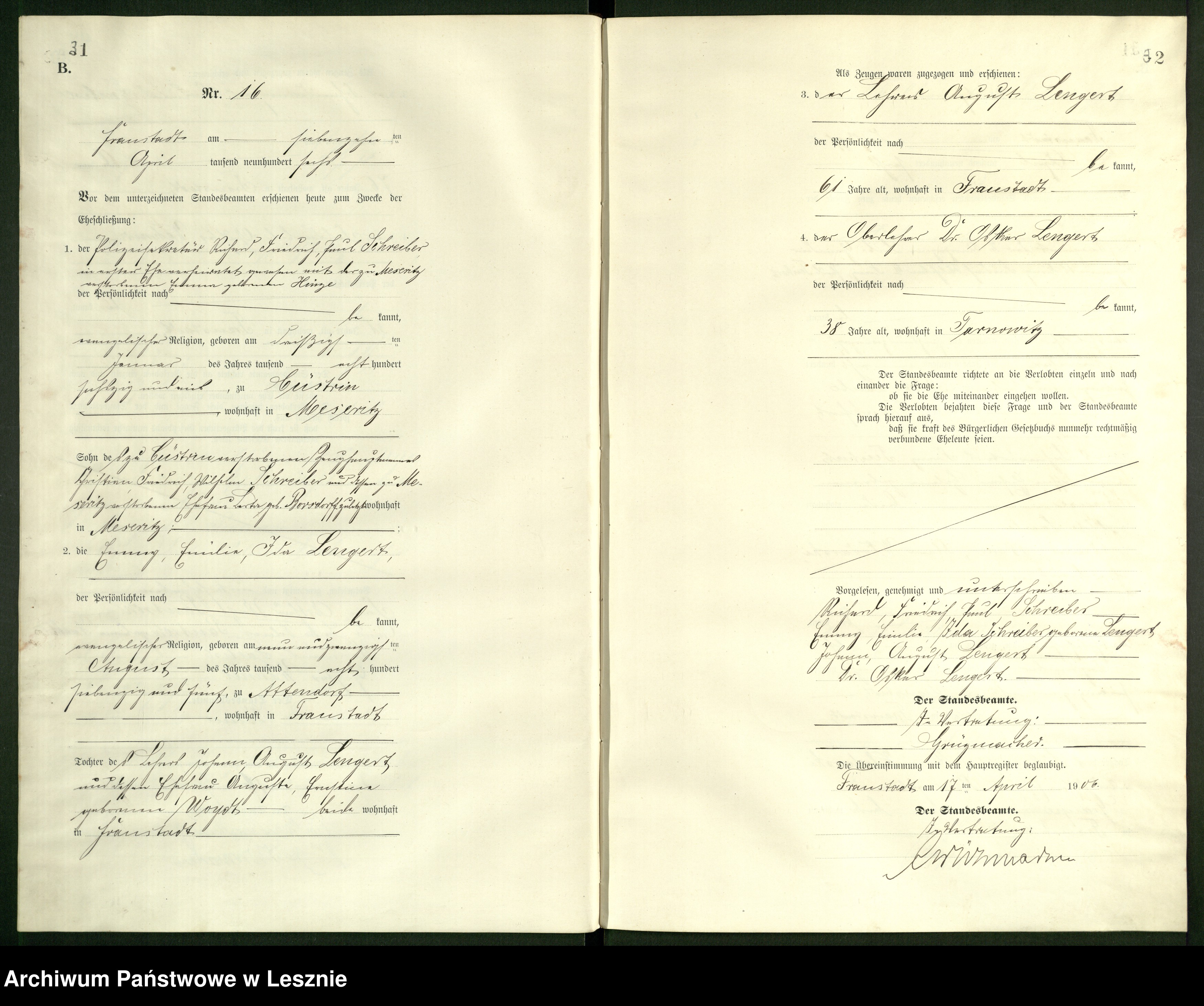 Kinder mit: Johann August Lengert (* 13.01.1845 Sontop), Lehrer zu Glinau und später zu Fraustadt (oo 15.11.1866):